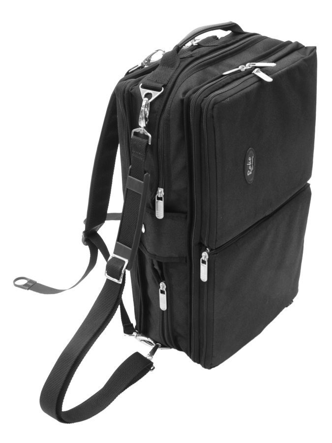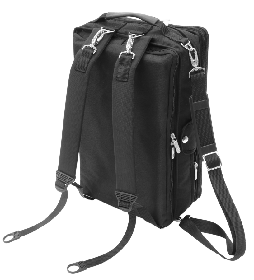 Series De Luxe, waterproofed nylon, best production by soft cushion, 4 exterior pouch for music and accessories, soft padded backpack strap, shoulder strap and leather handle.